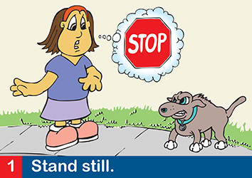 When the dog leaves slowly back away and don’t forget to tell your parents.