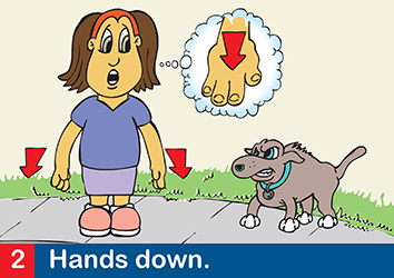 By keeping your hands down by your side you are telling the dog that you are not going to fight or hurt it.
