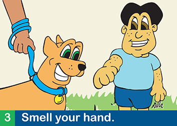 • Bring your hand up from your side so the dog can smell the back of your hand with your fingers curled under.